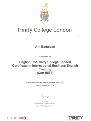 Certificat de formare în limba engleză pentru afaceri internaționale (ENGLISH UK/TRINITY Cert IBET) de la International Language Institute, Ungaria