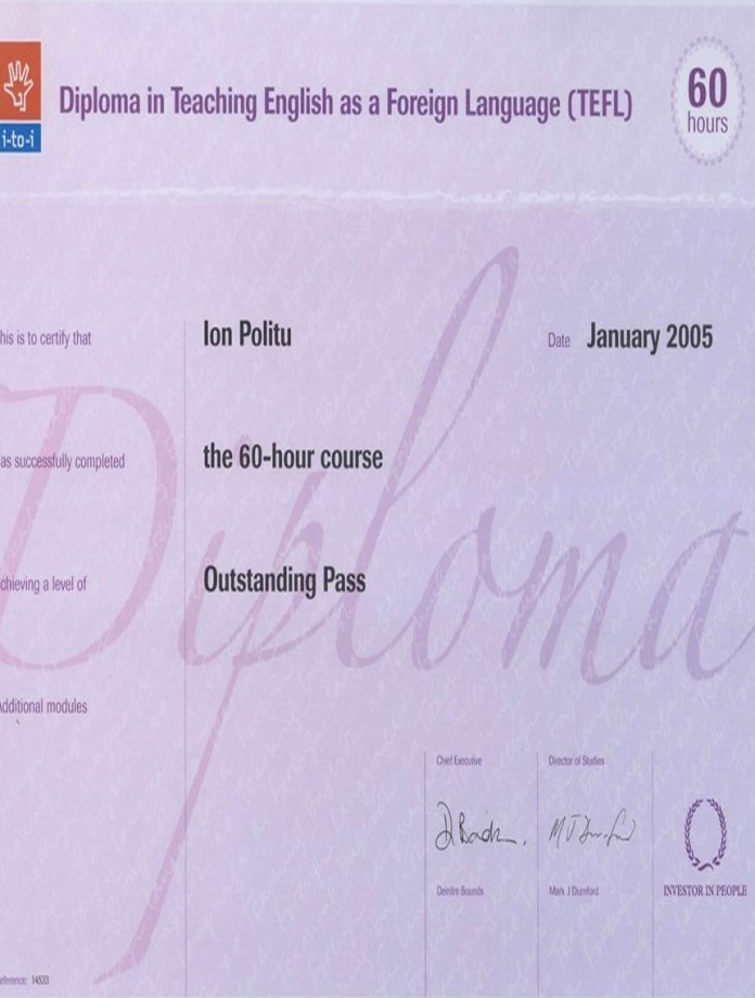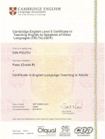 Certificat de predare a limbii engleze pentru vorbitori de alte limbi străine Cambridge English CELTA (cu onoare, pass B), Ucraina